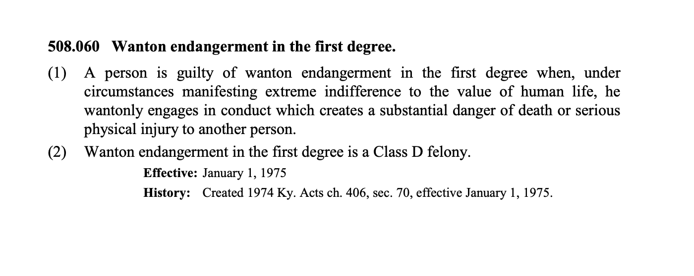 The Appeal On Twitter First Degree Wanton Endangerment Is A Class D Felony In Kentucky Punishable By Between One And Five Years In Prison Https T Co Suwh8buj4c Https T Co Dtcezacdid Twitter